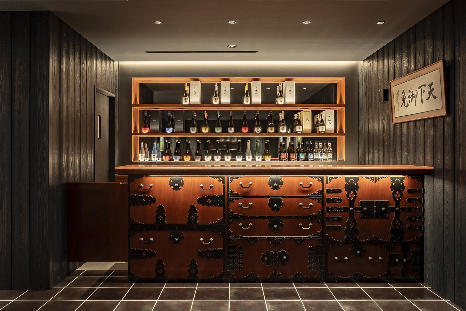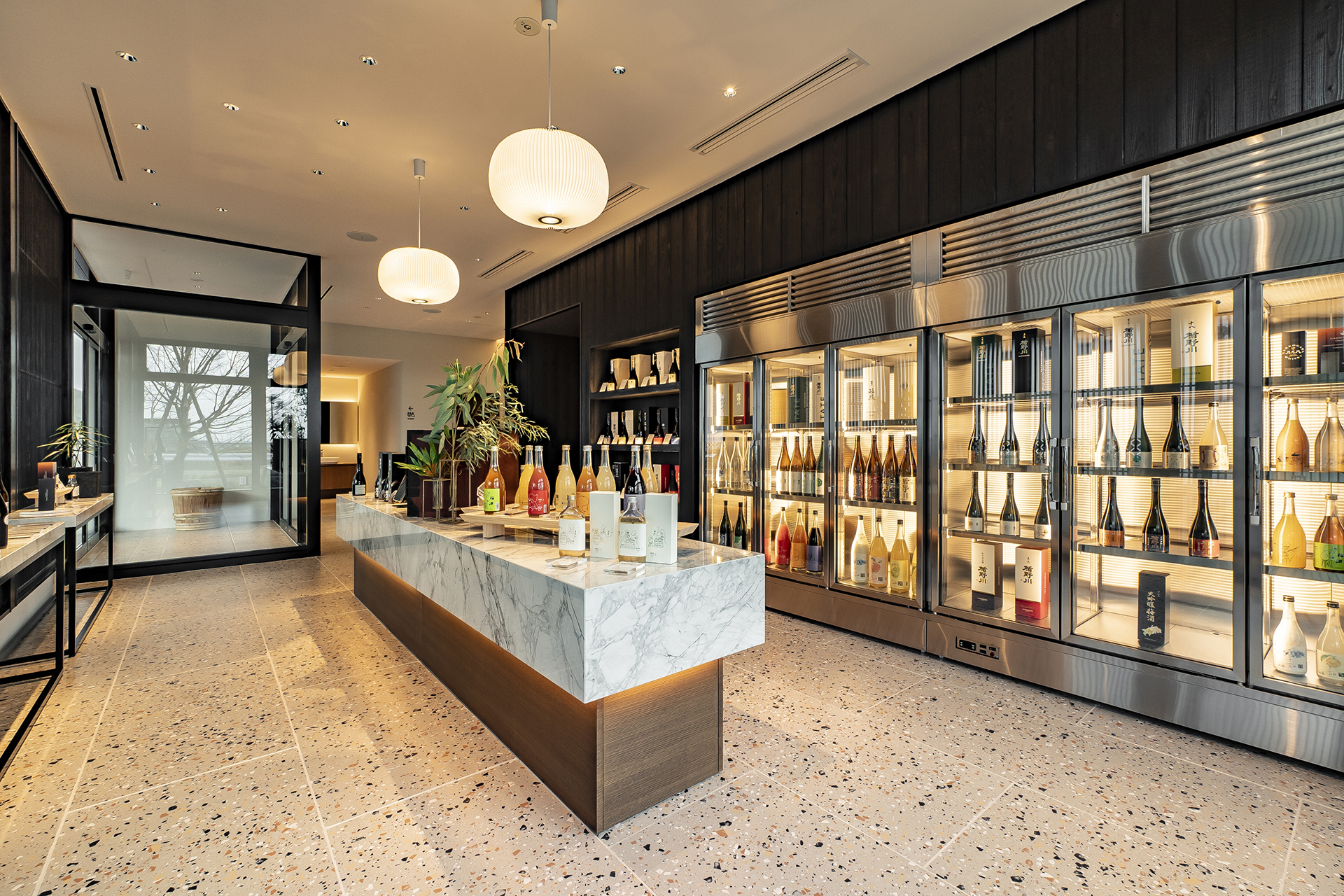 楯野川ブランドを始めとした個性あふれる商品群が魅力的に映るように、和の箱に洋のエッセンスが散りばめられた上品な空間を目指しました。